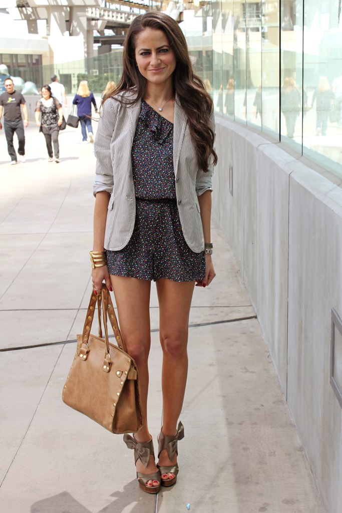 I really love the look of a cute floral romper paired with a blazer or a cardigan and a nice pair of wedge sandals or flats. Rompers scream femininity and are perfect to wear for a date night or for a casual backyard barbecue.